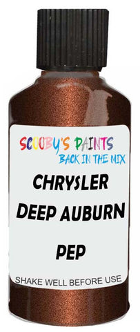 Professionally mixed touch-up paint matched to Chrysler factory colour Pep – Deep Auburn Pearl for model years 2012–2018. Ideal for repairing stone chips, light scratches and minor blemishes while helping to prevent corrosion.