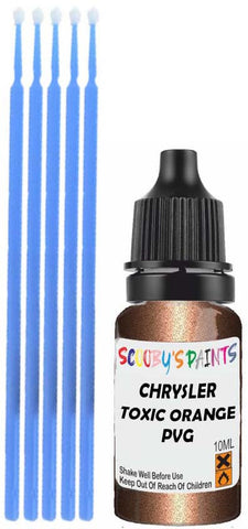 Professionally mixed touch-up paint matched to Chrysler factory colour Pvg – Toxic Orange Pearl for model years 2010–2018. Ideal for repairing stone chips, light scratches and minor blemishes while helping to prevent corrosion.