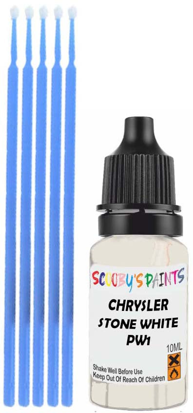 Professionally mixed touch-up paint matched to Chrysler factory colour Pw1 – Stone White for model years 1996–2015. Ideal for repairing stone chips, light scratches and minor blemishes while helping to prevent corrosion.