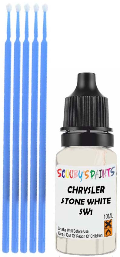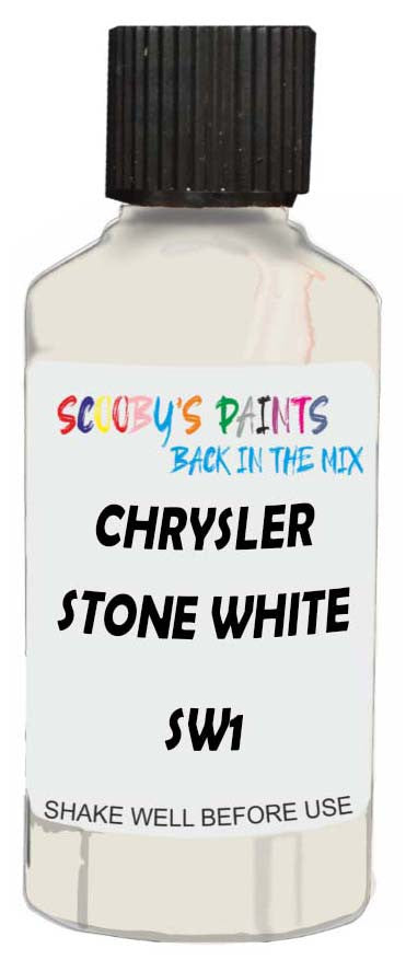 Professionally mixed touch-up paint matched to Chrysler factory colour Sw1 – Stone White for model years 1996–2015. Ideal for repairing stone chips, light scratches and minor blemishes while helping to prevent corrosion.