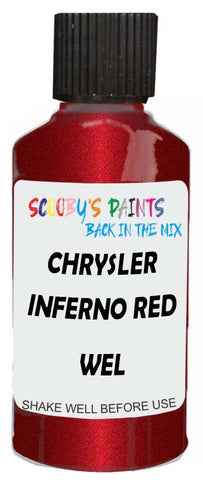 Professionally mixed touch-up paint matched to Chrysler factory colour Wel – Inferno Red Met Tint for model years 1999–2006. Ideal for repairing stone chips, light scratches and minor blemishes while helping to prevent corrosion.