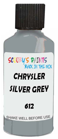 Professionally mixed touch-up paint matched to Chrysler factory colour 612 – Silver Grey Metallic for model years 2012–2012. Ideal for repairing stone chips, light scratches and minor blemishes while helping to prevent corrosion.