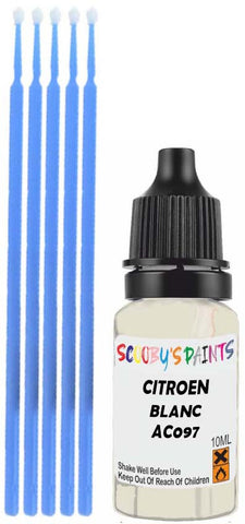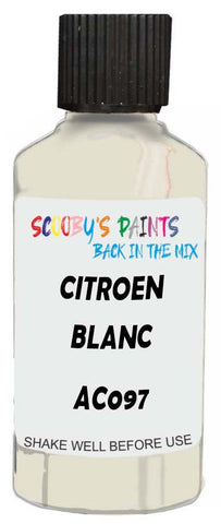 Professionally mixed touch-up paint matched to Citroen factory colour Ac097 – Blanc Stellaire for model years 1968–1969. Ideal for repairing stone chips, light scratches and minor blemishes while helping to prevent corrosion.