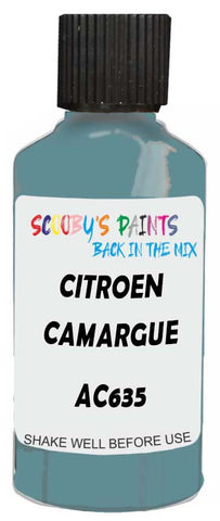 Professionally mixed touch-up paint matched to Citroen factory colour Ac635 – Camargue Blue for model years 1971–1984. Ideal for repairing stone chips, light scratches and minor blemishes while helping to prevent corrosion.