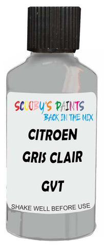 Professionally mixed touch-up paint matched to Citroen factory colour Gvt – Gris Clair Metallic for model years 1971–1989. Ideal for repairing stone chips, light scratches and minor blemishes while helping to prevent corrosion.