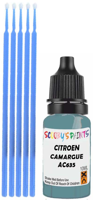 Professionally mixed touch-up paint matched to Citroen factory colour Ac635 – Camargue Blue for model years 1971–1984. Ideal for repairing stone chips, light scratches and minor blemishes while helping to prevent corrosion.