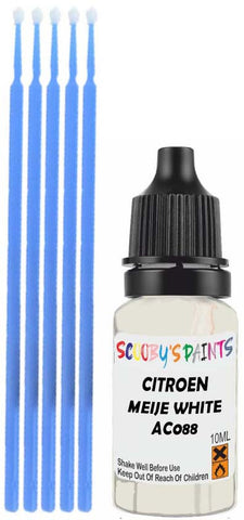Professionally mixed touch-up paint matched to Citroen factory colour Ac088 – Meije White for model years 1970–1992. Ideal for repairing stone chips, light scratches and minor blemishes while helping to prevent corrosion.