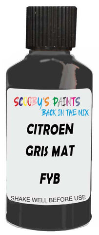 Professionally mixed touch-up paint matched to Citroen factory colour Fyb – Gris Mat for model years 1990–2002. Ideal for repairing stone chips, light scratches and minor blemishes while helping to prevent corrosion.