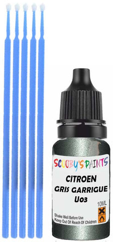 Professionally mixed touch-up paint matched to Citroen factory colour U03 – Gris Garrigue Metallic for model years 2007–2015. Ideal for repairing stone chips, light scratches and minor blemishes while helping to prevent corrosion.