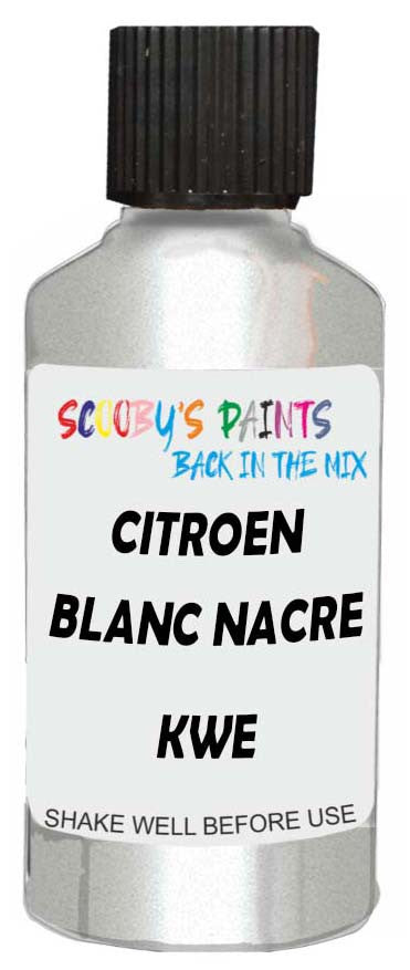 Professionally mixed touch-up paint matched to Citroen factory colour Kwe – Blanc Nacre for model years 2019–2020. Ideal for repairing stone chips, light scratches and minor blemishes while helping to prevent corrosion.