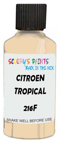 Professionally mixed touch-up paint matched to Citroen factory colour 216F – Tropical Beige for model years 1991–2000. Ideal for repairing stone chips, light scratches and minor blemishes while helping to prevent corrosion.