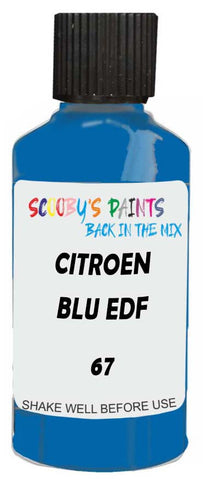 Professionally mixed touch-up paint matched to Citroen factory colour 67 – Blu Edf for model years 2014–2015. Ideal for repairing stone chips, light scratches and minor blemishes while helping to prevent corrosion.
