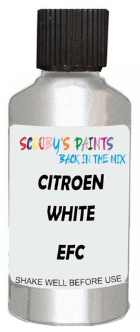 Professionally mixed touch-up paint matched to Citroen factory colour Efc – White Pearlescent for model years 2012–2022. Ideal for repairing stone chips, light scratches and minor blemishes while helping to prevent corrosion.
