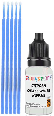 Professionally mixed touch-up paint matched to Citroen factory colour Kwf,N8 – Opale White for model years 2010–2023. Ideal for repairing stone chips, light scratches and minor blemishes while helping to prevent corrosion.