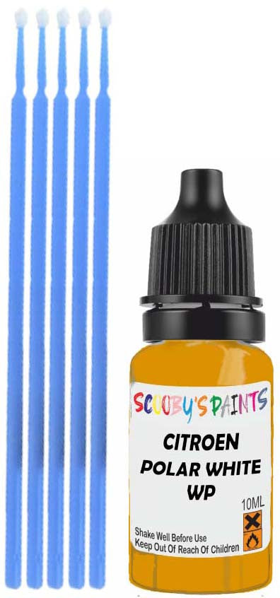 Professionally mixed touch-up paint matched to Citroen factory colour Wp – Polar White for model years 1992–2019. Ideal for repairing stone chips, light scratches and minor blemishes while helping to prevent corrosion.
