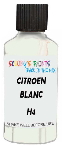 Professionally mixed touch-up paint matched to Citroen factory colour H4 – Blanc Antartique for model years 2010–2015. Ideal for repairing stone chips, light scratches and minor blemishes while helping to prevent corrosion.