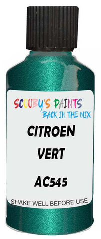 Professionally mixed touch-up paint matched to Citroen factory colour Ac545 – Vert Amazonie for model years 1981–1984. Ideal for repairing stone chips, light scratches and minor blemishes while helping to prevent corrosion.
