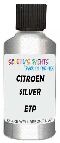 Professionally mixed touch-up paint matched to Citroen factory colour Etp – Silver Metallic for model years 1989–1993. Ideal for repairing stone chips, light scratches and minor blemishes while helping to prevent corrosion.