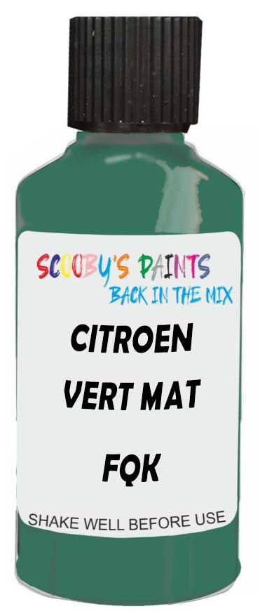 Professionally mixed touch-up paint matched to Citroen factory colour Fqk – Vert Mat for model years 1984–1986. Ideal for repairing stone chips, light scratches and minor blemishes while helping to prevent corrosion.