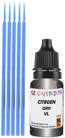 Professionally mixed touch-up paint matched to Citroen factory colour Vl – Gris Platinium Metallic for model years 2015–2022. Ideal for repairing stone chips, light scratches and minor blemishes while helping to prevent corrosion.