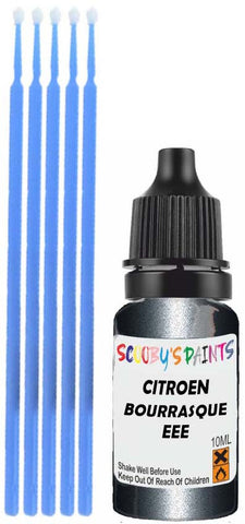 Professionally mixed touch-up paint matched to Citroen factory colour Eee – Bourrasque Met Mat for model years 2013–2014. Ideal for repairing stone chips, light scratches and minor blemishes while helping to prevent corrosion.