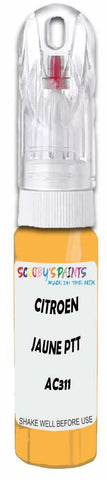 Professionally mixed touch-up paint matched to Citroen factory colour Ac311 – Jaune Ptt for model years 1968–1994. Ideal for repairing stone chips, light scratches and minor blemishes while helping to prevent corrosion.
