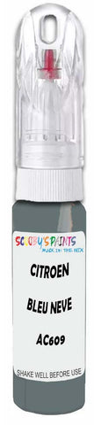 Professionally mixed touch-up paint matched to Citroen factory colour Ac609 – Bleu Neve for model years 1959–1970. Ideal for repairing stone chips, light scratches and minor blemishes while helping to prevent corrosion.