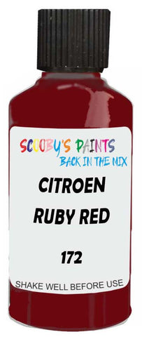 Professionally mixed touch-up paint matched to Citroen factory colour 172 – Ruby Red for model years 1994–2000. Ideal for repairing stone chips, light scratches and minor blemishes while helping to prevent corrosion.