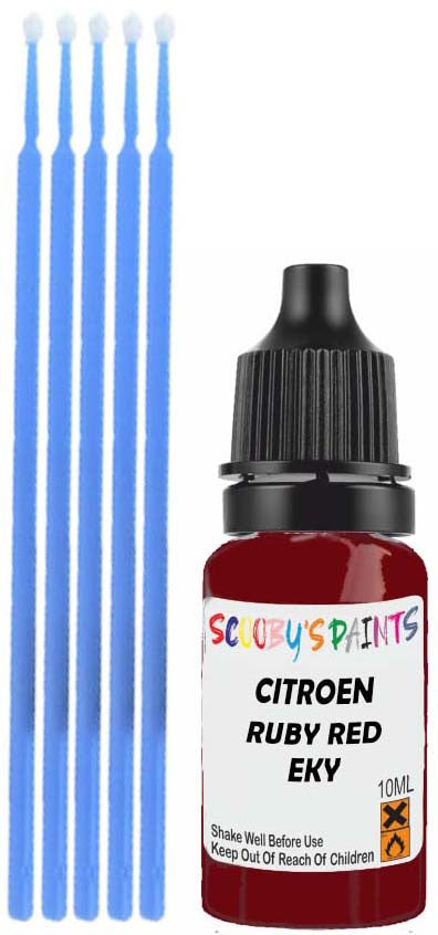 Professionally mixed touch-up paint matched to Citroen factory colour Eky – Ruby Red for model years 1994–2000. Ideal for repairing stone chips, light scratches and minor blemishes while helping to prevent corrosion.