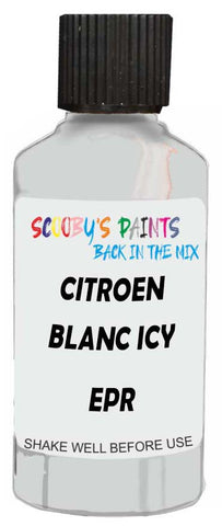 Professionally mixed touch-up paint matched to Citroen factory colour Epr – Blanc Icy for model years 2020–2023. Ideal for repairing stone chips, light scratches and minor blemishes while helping to prevent corrosion.