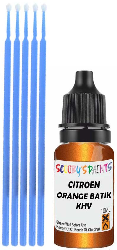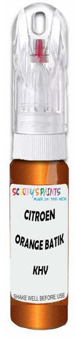 Professionally mixed touch-up paint matched to Citroen factory colour Khv – Orange Batik Nacre Metallic for model years 2006–2010. Ideal for repairing stone chips, light scratches and minor blemishes while helping to prevent corrosion.