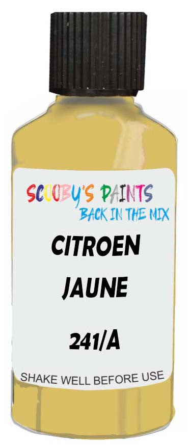 Professionally mixed touch-up paint matched to Citroen factory colour 241/A – Jaune Carioca for model years 2002–2020. Ideal for repairing stone chips, light scratches and minor blemishes while helping to prevent corrosion.