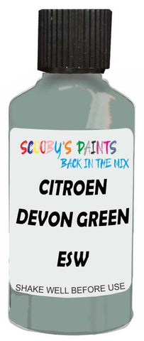 Professionally mixed touch-up paint matched to Citroen factory colour Esw – Devon Green for model years 1994–2020. Ideal for repairing stone chips, light scratches and minor blemishes while helping to prevent corrosion.