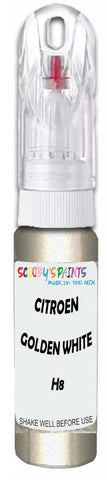 Professionally mixed touch-up paint matched to Citroen factory colour H8 – Golden White Metallic for model years 2007–2020. Ideal for repairing stone chips, light scratches and minor blemishes while helping to prevent corrosion.