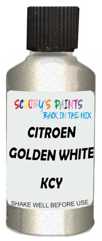 Professionally mixed touch-up paint matched to Citroen factory colour Kcy – Golden White Metallic for model years 2007–2021. Ideal for repairing stone chips, light scratches and minor blemishes while helping to prevent corrosion.