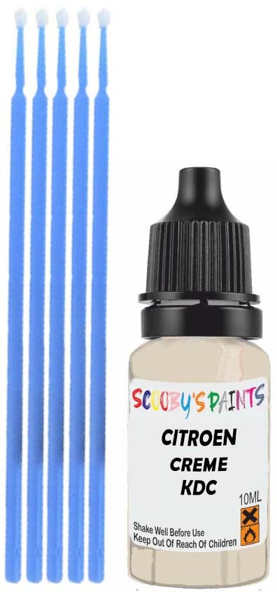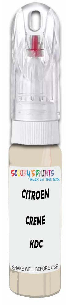 Professionally mixed touch-up paint matched to Citroen factory colour Kdc – Creme Parthenon for model years 2006–2019. Ideal for repairing stone chips, light scratches and minor blemishes while helping to prevent corrosion.