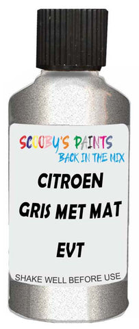 Professionally mixed touch-up paint matched to Citroen factory colour Evt – Gris Met Mat for model years 1996–1998. Ideal for repairing stone chips, light scratches and minor blemishes while helping to prevent corrosion.