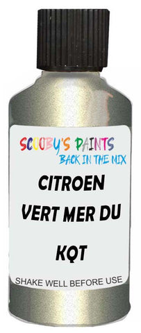 Professionally mixed touch-up paint matched to Citroen factory colour Kqt – Vert Mer Du Nord Metallic for model years 1998–2004. Ideal for repairing stone chips, light scratches and minor blemishes while helping to prevent corrosion.