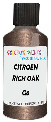 Professionally mixed touch-up paint matched to Citroen factory colour G6 – Rich Oak Metallic for model years 2016–2020. Ideal for repairing stone chips, light scratches and minor blemishes while helping to prevent corrosion.