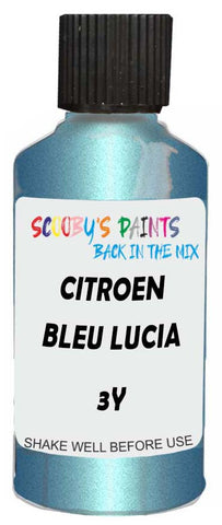 Professionally mixed touch-up paint matched to Citroen factory colour 3Y – Bleu Lucia Nacre Metallic for model years 2001–2015. Ideal for repairing stone chips, light scratches and minor blemishes while helping to prevent corrosion.