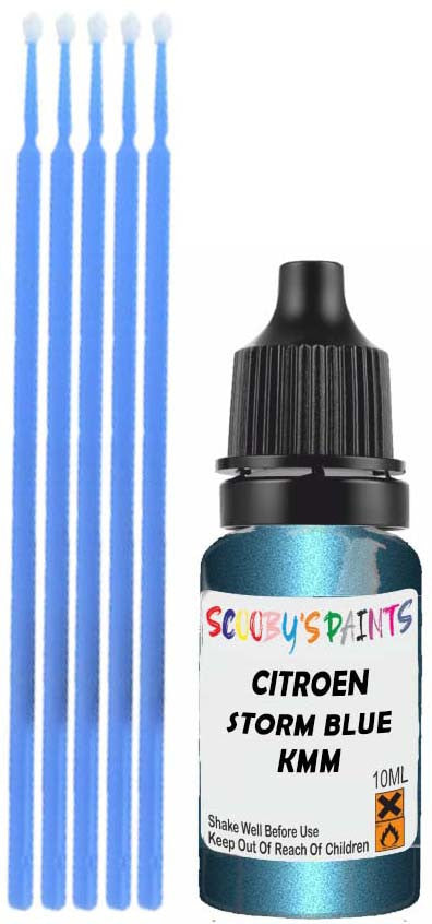 Professionally mixed touch-up paint matched to Citroen factory colour Kmm – Storm Blue Metallic for model years 1994–2006. Ideal for repairing stone chips, light scratches and minor blemishes while helping to prevent corrosion.
