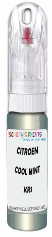 Professionally mixed touch-up paint matched to Citroen factory colour Krs – Cool Mint Pearl Metallic for model years 1999–2008. Ideal for repairing stone chips, light scratches and minor blemishes while helping to prevent corrosion.
