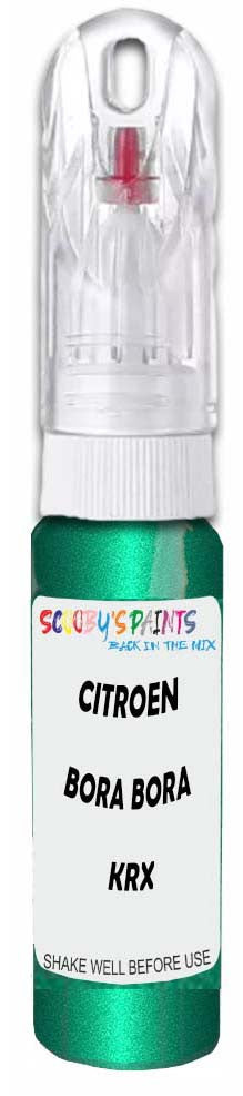 Professionally mixed touch-up paint matched to Citroen factory colour Krx – Bora Bora Green Metallic for model years 1999–2002. Ideal for repairing stone chips, light scratches and minor blemishes while helping to prevent corrosion.