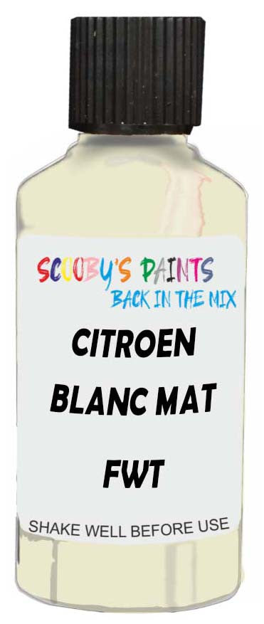 Professionally mixed touch-up paint matched to Citroen factory colour Fwt – Blanc Mat for model years 1986–1997. Ideal for repairing stone chips, light scratches and minor blemishes while helping to prevent corrosion.