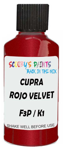 Professionally mixed touch-up paint matched to Cupra factory colour F3P / K1 – Rojo Velvet Metallic for model years 2017–2022. Ideal for repairing stone chips, light scratches and minor blemishes while helping to prevent corrosion.