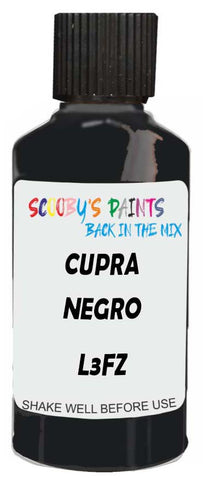 Professionally mixed touch-up paint matched to Cupra factory colour L3Fz – Negro for model years 2021–2022. Ideal for repairing stone chips, light scratches and minor blemishes while helping to prevent corrosion.