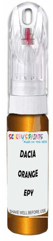 Professionally mixed touch-up paint matched to Dacia factory colour Epy – Orange Atacama Nacre for model years 2015–2023. Ideal for repairing stone chips, light scratches and minor blemishes while helping to prevent corrosion.