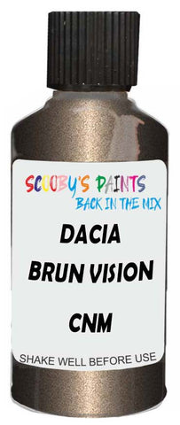Professionally mixed touch-up paint matched to Dacia factory colour Cnm – Brun Vision Nacre Metallic for model years 2017–2021. Ideal for repairing stone chips, light scratches and minor blemishes while helping to prevent corrosion.