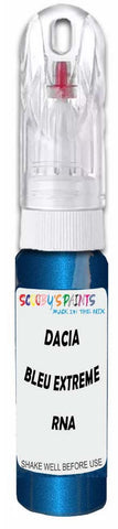Professionally mixed touch-up paint matched to Dacia factory colour Rna – Bleu Extreme Metallic for model years 2008–2012. Ideal for repairing stone chips, light scratches and minor blemishes while helping to prevent corrosion.