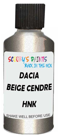 Professionally mixed touch-up paint matched to Dacia factory colour Hnk – Beige Cendre Metallic for model years 2012–2016. Ideal for repairing stone chips, light scratches and minor blemishes while helping to prevent corrosion.